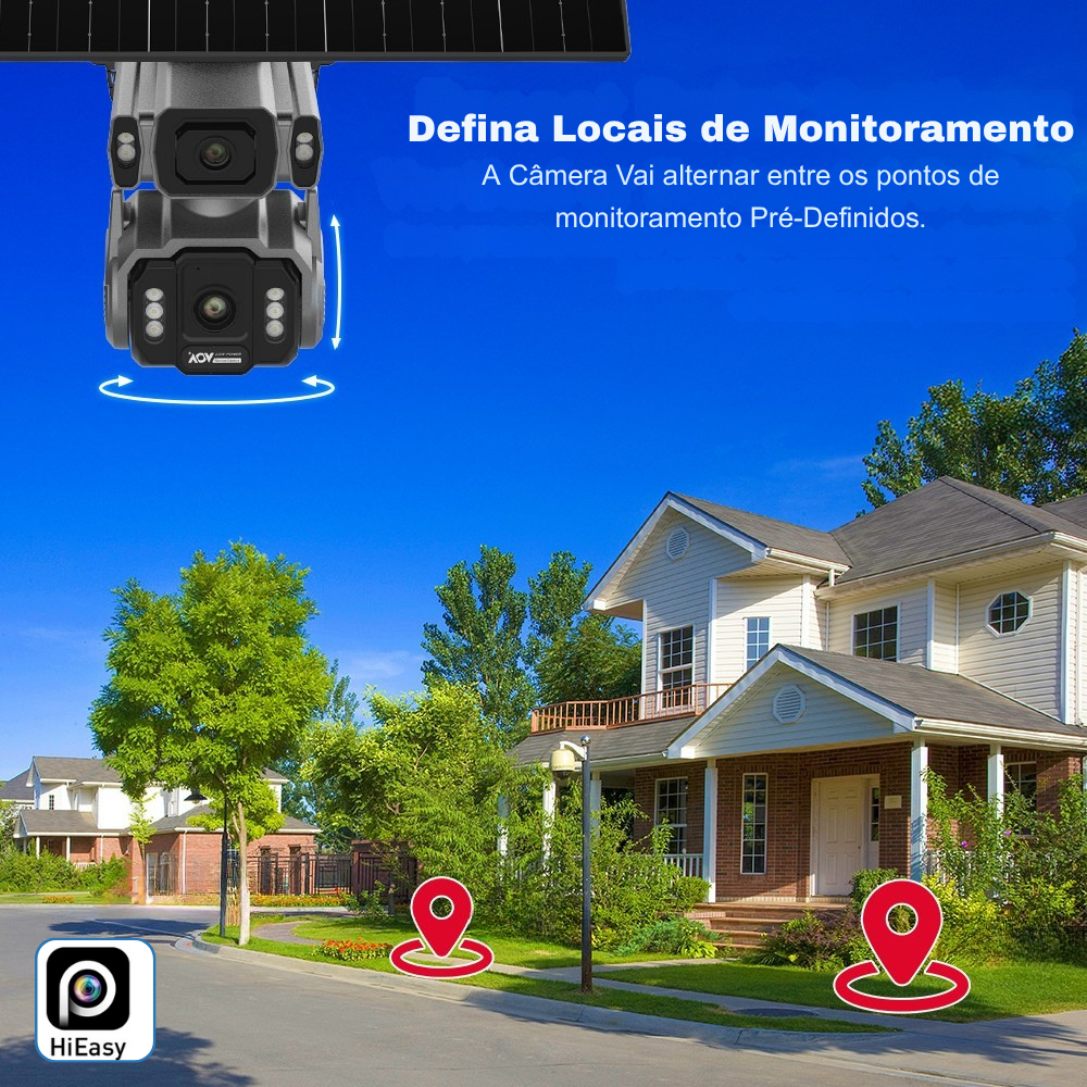 Câmera de Segurança Solar Externa 360° com Gravação 24h AOV, Zoom Óptico 12x, Rastreamento Inteligente, Áudio Bidirecional e Visão Noturna - com entrada pra chip 4G de celular